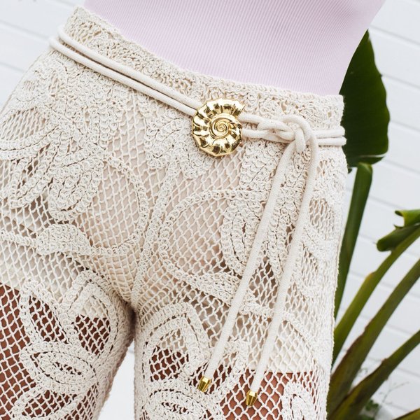 O Cinto Corda caramujo Dourado é o acessório perfeito para compor looks com charme praiano e toque sofisticado. Feito em corda natural com ponteiras metálicas, traz como destaque a fivela em formato de concha dourada, que adiciona brilho e personalidade à produção. Ideal para usar com vestidos, saias ou shorts, elevando o visual com elegância despretensiosa.