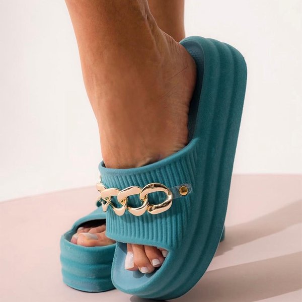 A Flatform Ayla em veludo turquesa combina maciez e estilo contemporâneo. Os elos decorativos dão personalidade ao design, enquanto o solado garante estabilidade e conforto para qualquer ocasião. Um modelo versátil e sofisticado para quem quer se destacar.