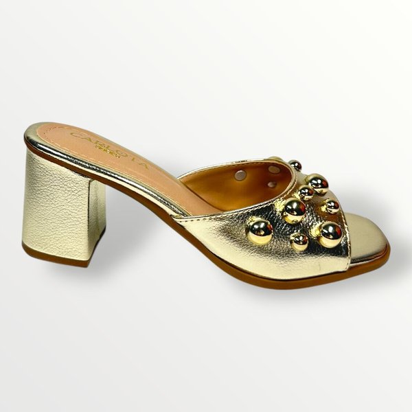 O tamanco Mel Dourada une o charme do salto bloco com a elegância das aplicações douradas, criando um visual moderno e sofisticado. Perfeita para ocasiões especiais ou para dar um upgrade nos looks do dia a dia, ela traz conforto e estilo em cada passo.