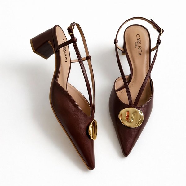 Com design moderno e extremamente feminino, o Scarpin Slingback Pillar em tom marrom é a escolha perfeita para quem ama elegância com personalidade. O bico fino alonga a silhueta, enquanto o salto bloco traz estabilidade e conforto para o dia todo. As tiras delicadas deixam o modelo mais leve e refinado, e o detalhe dourado frontal adiciona um toque de luxo na medida certa.