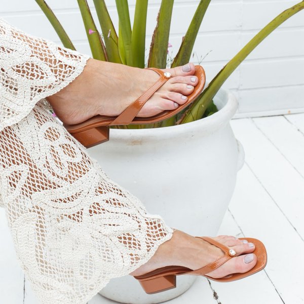 O Tamanco de Salto Cristal na cor caramelo combina design moderno e versatilidade. Com tira no dedo e salto transparente, traz um toque sofisticado e discreto, perfeito para compor produções que vão do casual ao elegante com muito estilo.