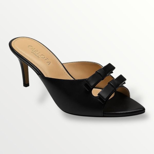 O Tamanco Sara é confeccionado em couro preto premium, com salto de 8 cm que valoriza a silhueta e garante um visual marcante. Seu design moderno com bico vazado e dois laços delicados traz um toque de feminilidade e elegância na medida certa. Ideal para ocasiões especiais ou para transformar qualquer look em uma produção sofisticada.