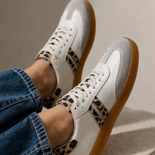Com design clean em tom off white, o Tênis Sophie Off White com Detalhes Onça ganha destaque com os detalhes em animal print, que trazem personalidade na medida certa. O cabedal em material sintético de alta qualidade combina com a biqueira em acabamento acamurçado, criando um visual sofisticado e versátil. O solado emborrachado no tom caramelo adiciona um toque retrô super estiloso, além de garantir conforto e estabilidade no dia a dia. Já o shape casual faz dele a escolha ideal para compor desde looks básicos com jeans até produções mais elaboradas.